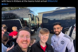 B费在曼联下榻的酒店外花了一个小时为球迷签名和合影,一位球迷在社交媒体上晒出与B费的合照,配文:“世界最佳球员在球队下榻的酒店花了一个小时为球迷签名合影。”
